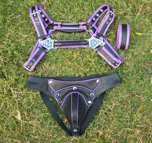 Harness made from garment leather. Has a comfortable feel the moment you put it on.