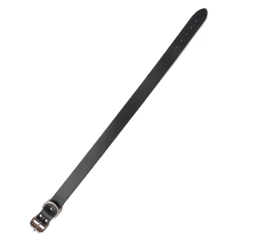 This belt/bondage strap is made of strong latigo leather, about 1/8 inch thick. It has a nickel plated rolling buckle and D-ring keeper. Each belt is 1½” wide.